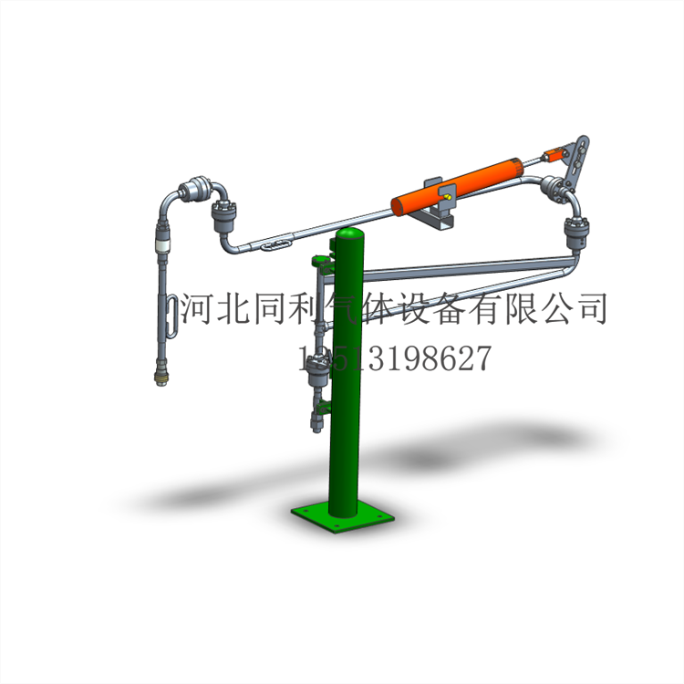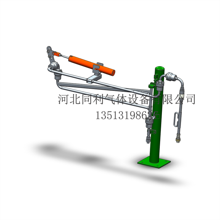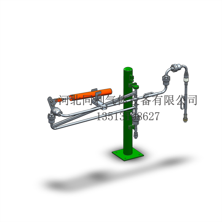 氢气装卸臂也称氢气鹤管,由氢气高压软管演化而来,装卸臂由旋转灵活、密封性能好、 耐较大负荷的旋转接头与管道、管道附件、平衡装置、支撑机构等组合而成,采用立柱承载 结构,将工艺管线的机械应力减至下限,从而大程度上增加了产品的寿命,用与氢气管束运 输车与储运管线间的高压气体物料传输。该装卸臂具有流体阻力小,容积膨胀小,防化学腐 蚀性好,操作轻便,包络范围大等优势。广泛应用于制氢站、卸气站、加氢站等产所。可以 极大地降低了企业的生产成本,保障操作人员的安全。出厂的每台设备均委托省特种设备监 督检验院的监督检查,可出具第三方监督检验报告,质量有保障。