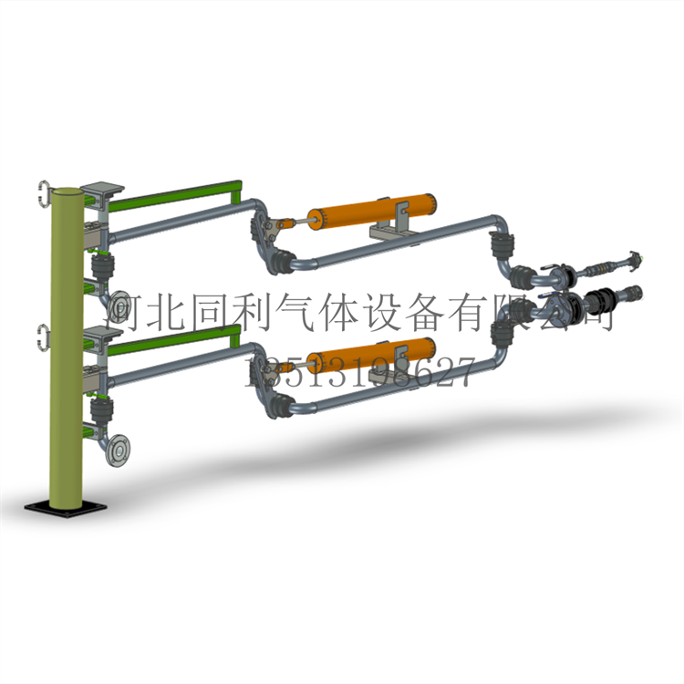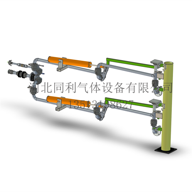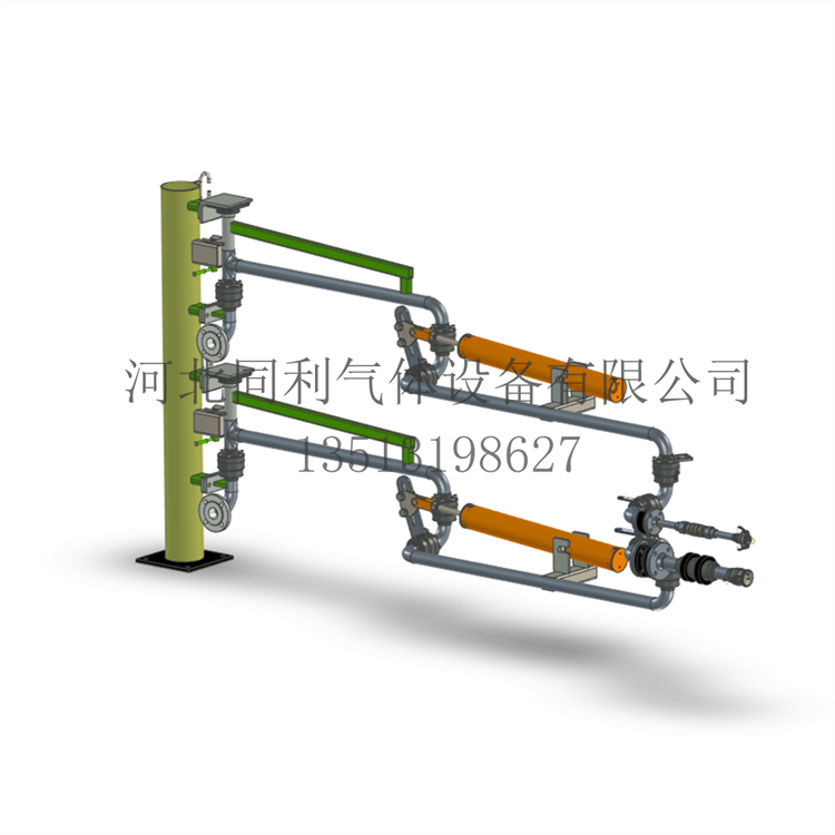 LPG装卸臂也称液化气鹤管,液化气装卸臂,由于LPG是日常生活中经常用到的石化产品,例如用做炊事燃料、城市燃气、汽车燃气等,所以LPG装卸臂是常用的鹤管种类之一。LPG是石油产品之一,是从油气田开采、炼油厂和乙烯工厂中生产的一种无色、挥发性气体,主要应用于汽车、城市燃气、有色金属冶炼和金属切割通等行业。LPG具有易燃性、易聚积性、易扩散性、易产生静电、易冻伤、易膨胀性等特点,所以使用LPG装卸臂应选择底部密闭装车鹤管。